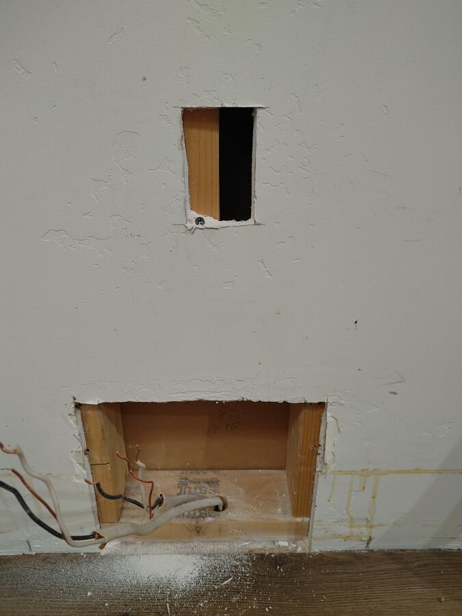 ..and, of course, centering the new box on the wall puts a stud right in the way.