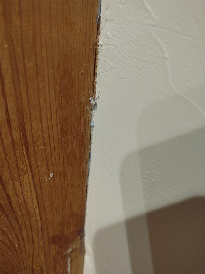 Whoever painted this last left a LOT of tape jammed in this corner when they... 'unmasked'. I'll need to dig it all out and clean up the column before I can mask and caulk it.