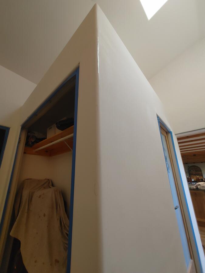 There's over a half dozen dents in this corner alone. I KNOW they weren't there before because I wiped all of this area down with TSP before the drywall finishers showed up and I would have seen them then.