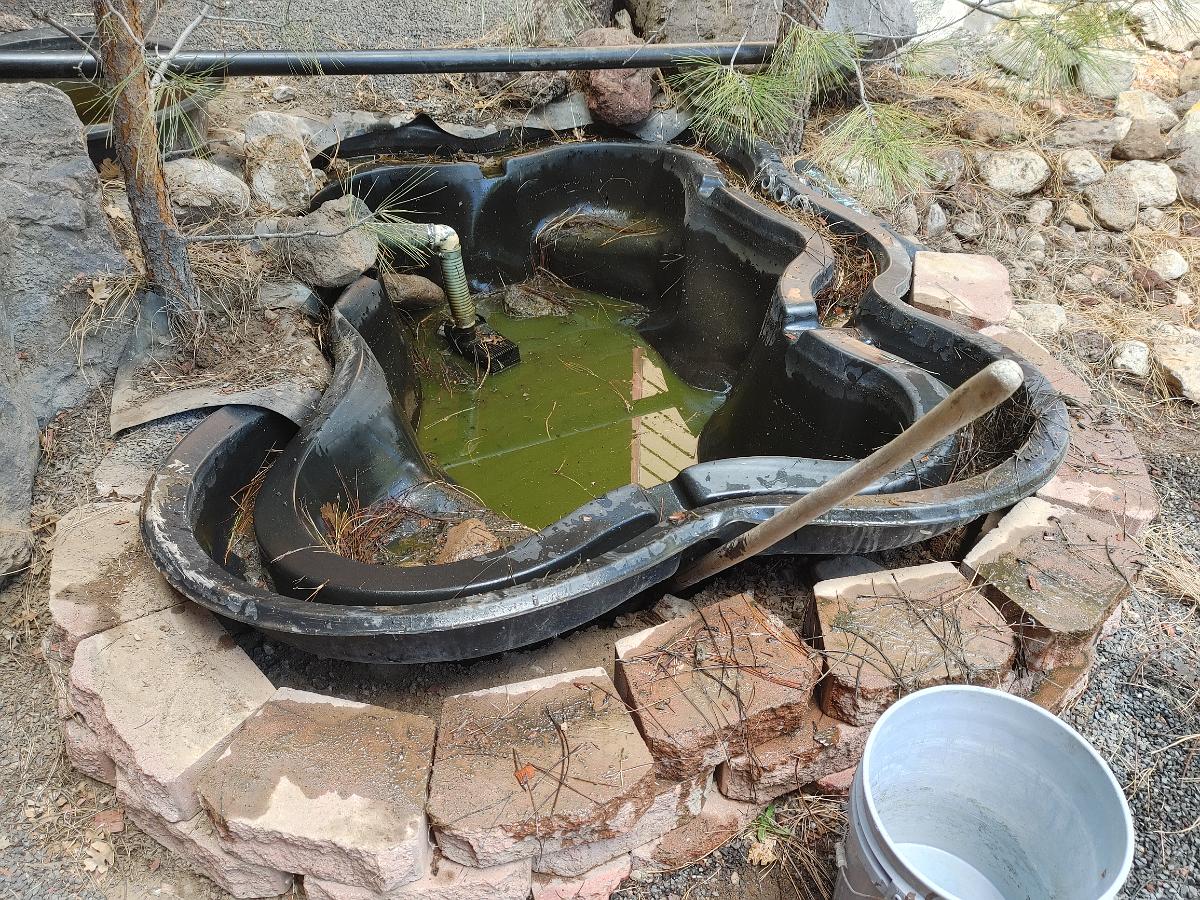 That's as far as the pump can take the water down. The shovel was used to pry up the plastic 'tub' and get more water to the pump.