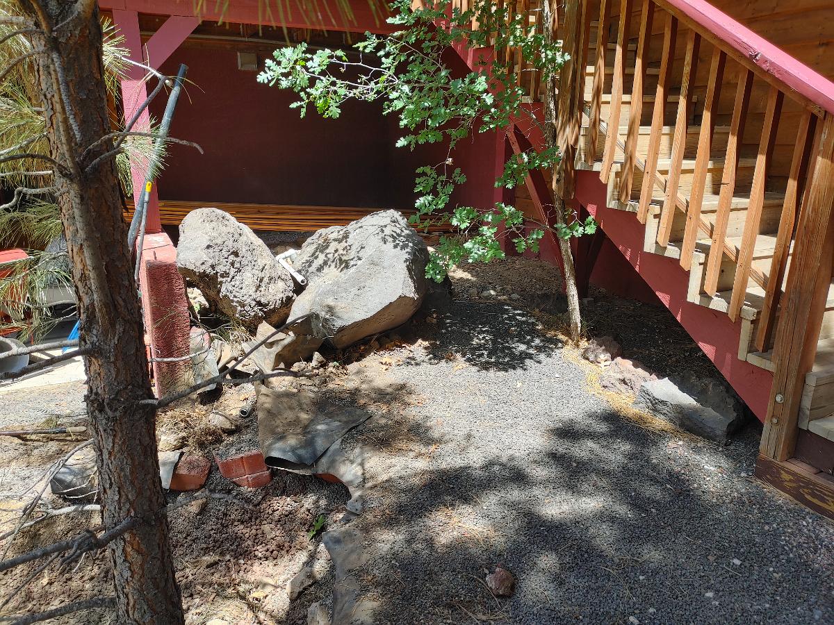 These will not be fun to move to where we can get a strap on them. The aspen tree up against the stairs has to go as well. Not sure if I'm going to try to move it, or just cut it off flush with the ground.