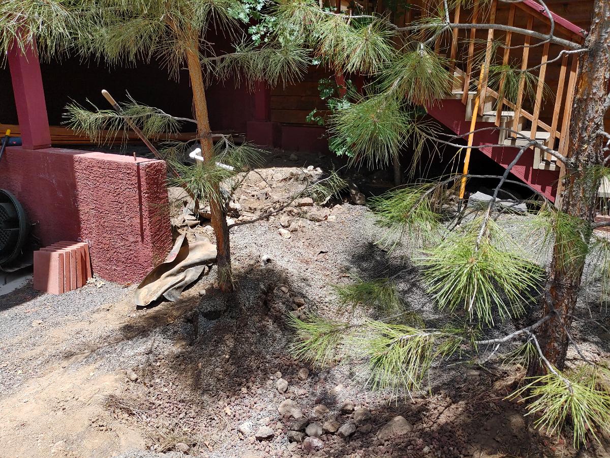 That was only a couple hours of work, one arm laceration (My son) and one shin scrape (me) to finish today's demo. Now it's time to move some dirt and lay out the concrete pour for the hot tub pad and the walkways I'll put in here. Trying to save the pine trees, but one *may* have to go.