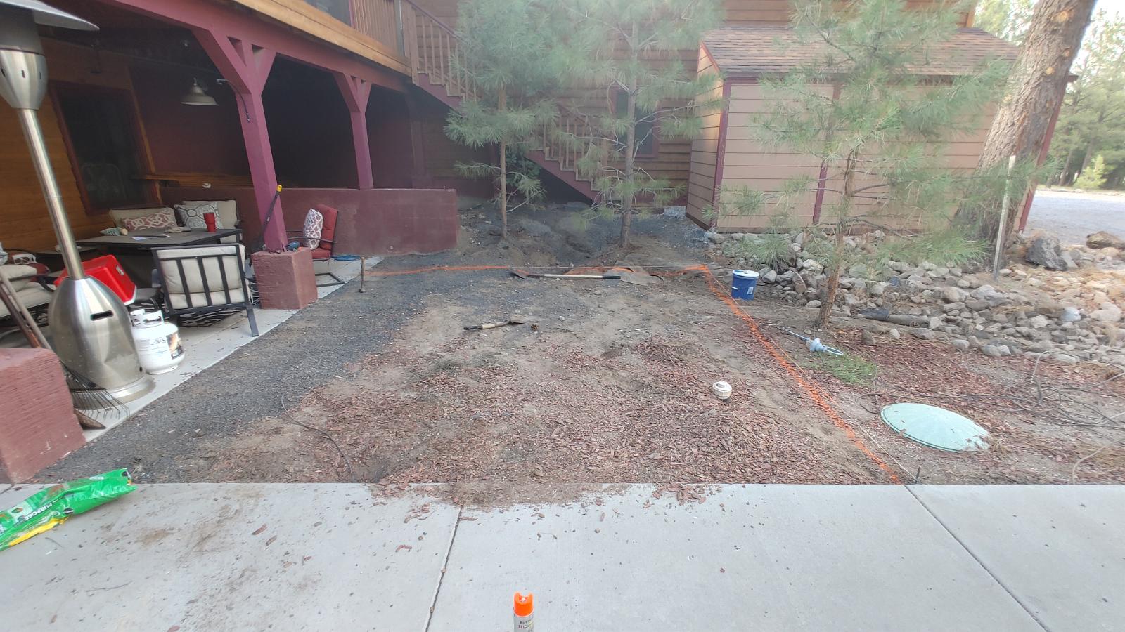 Rough layout of the slab. It will be roughly 15' square with a few footings poured for the gazebo's posts. The septic cleanout will get a short section of Solatube around it and then be flushed with the slab once everything is finished. When I build the deck around the hot tub, I'll make a section removable for servicing the septic system.