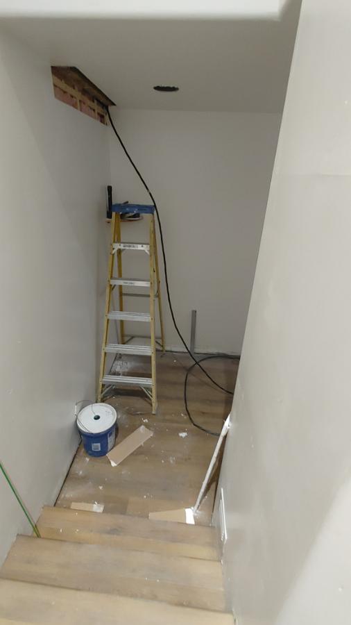 There is a lot of back and forth with this section as I have to pull a bit from in here, then go back out into the garage and feed a bit. It's slow going, but I'm making progress.