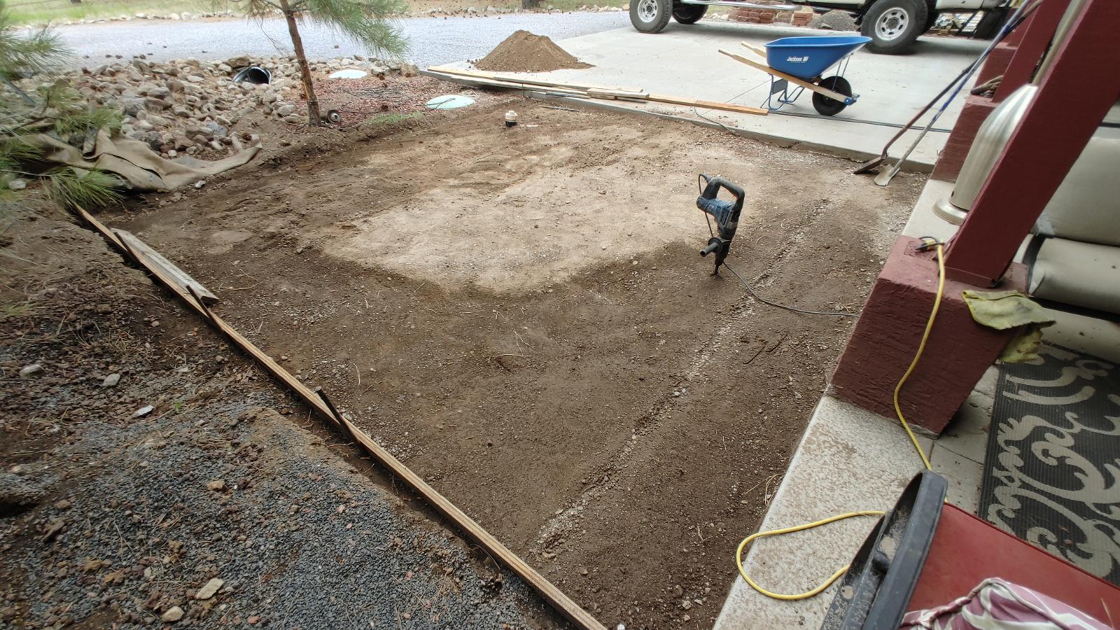 Another view of the first area I got cut down. I decided to just pile the dirt on the driveway for now. I'll get a dump trailer and haul it and any refuse away once the slab is poured.