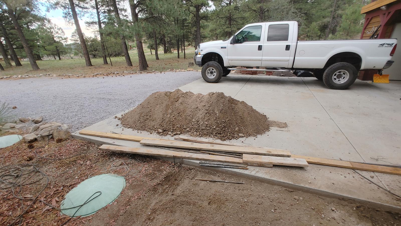 I think this is 15 or 16 wheelbarrow loads. The previous couple days I'd been taking the dirt and spreading it out on the property. I just couldn't bring myself to do all that walking and raking today. (Weird how the wide angle mode of my phone's camera makes the back end of my truck look. "Does this camera make my butt look big?"