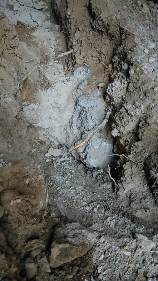 This is about 90 minutes in. I'm making progress, but it's going to be quite a while longer. This is easily the hardest rock I've ever encountered.