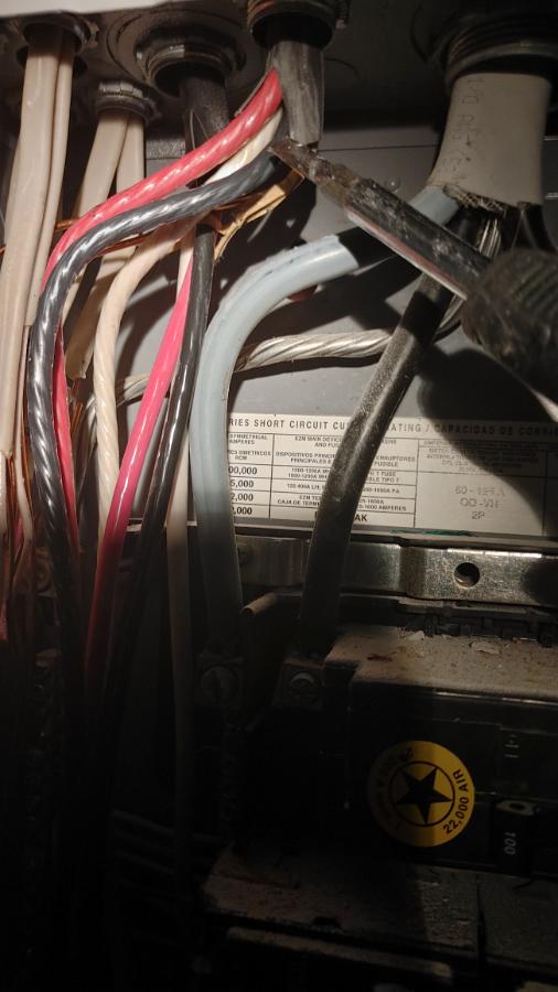 Killing the main breaker in this panel killed the lights in the utility room so I armed myself with a headlamp and wired everything up.. Screwdriver is pointing to the new cable.