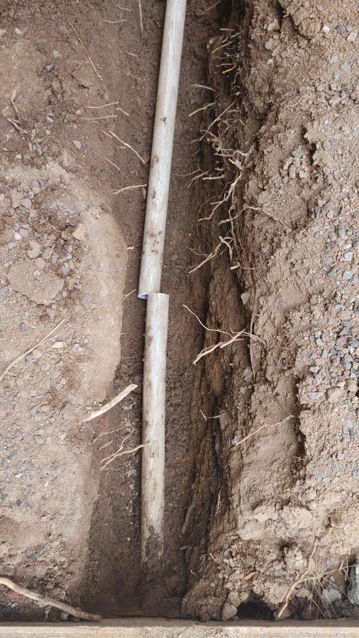 The concrete guys were due out to cut my new slab today, but when I got home from work, there was no sign of them. As a last ditch effort to clear the blockage I opened up the trench outside the slab form and snipped the conduit. I plan to use something to slide towards the blockage and break it up. After almost 4 hours with a hammer, rebar, a couple long drill bits I have and more than a few choice words, I made about 1/4" of progress. Best guess is the blockage is about 6" in length. Concrete guys never did show up, but I got a text message at 5:18pm saying they wouldn't be coming (No kidding....) and "promised" to get it done Friday (You know, the day the hot tub is supposed to be delivered)