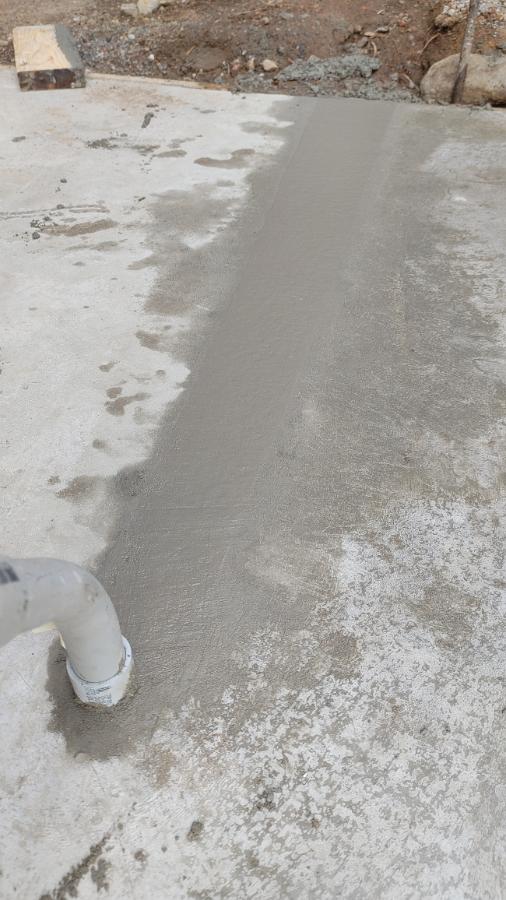 Got it pretty even so far. A quick scrape around the edges and then I'll hard trowel it. I'm not going for perfect, just level, as this will all be covered by a deck in the future.