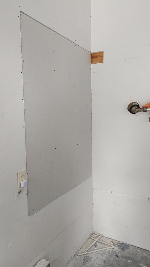 Boom. Done. I'll use one of the pieces of drywall I just removed to patch that small hole on the back wall.