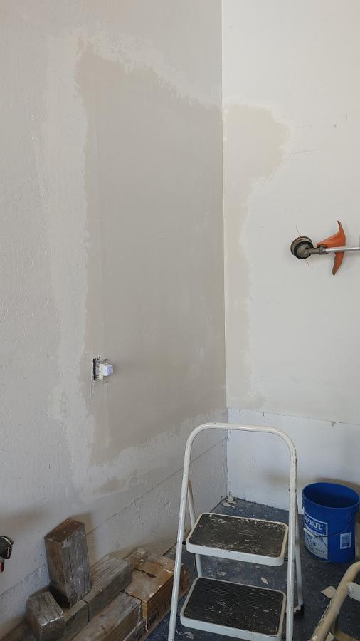 I decided to go ahead and skim the garage drywall patch before calling it a day. A quick sand and a little more mud to fill a couple low spots and this will be ready for texture.