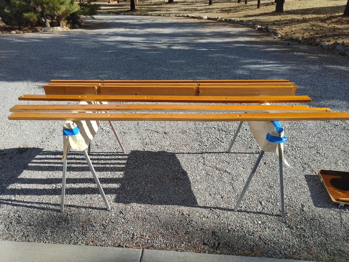 I'm using a Cetol based transparent stain (Same stuff I used on all the siding when doing the front door and fireplace projects) and a foam roller. I'll do 5 sides, then let the pieces dry overnight, then hit the remaining side in the morning. I'm figuring 2-3 days to stain everything, then I can start assembly.