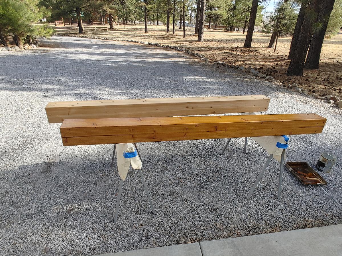 Two of the main posts. The stain is giving it a much warmer tone than the unfinished stuff.