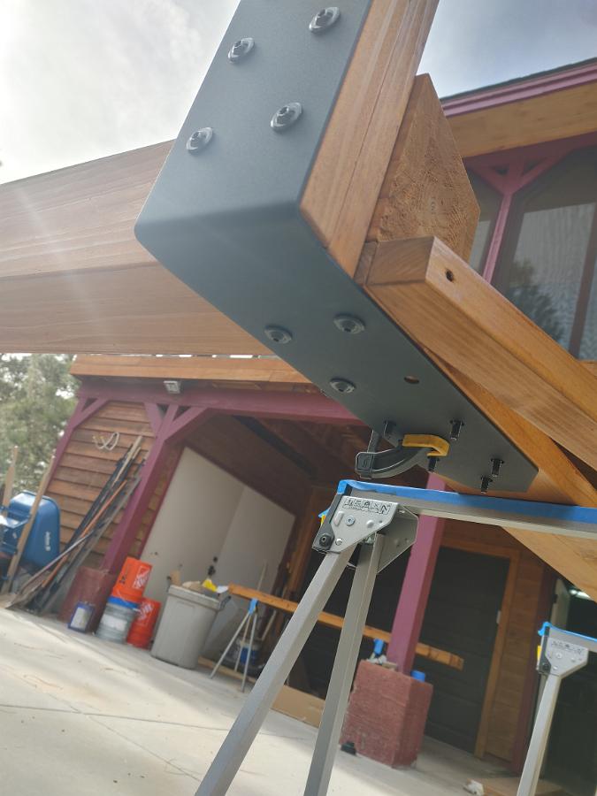 That last hole gets a washer head lag screw. Can't have a through bolt there because there's nothing on the other side of the truss to go through in that location.