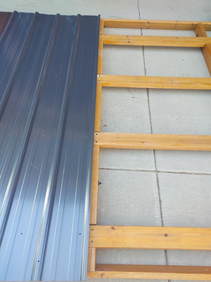 Third panel in place. This is the center joist pair. That's a pretty even reveal, but I'm a bit concerned it went over the center joint a bit. I double checked my layout and all the dims specified are correct.
