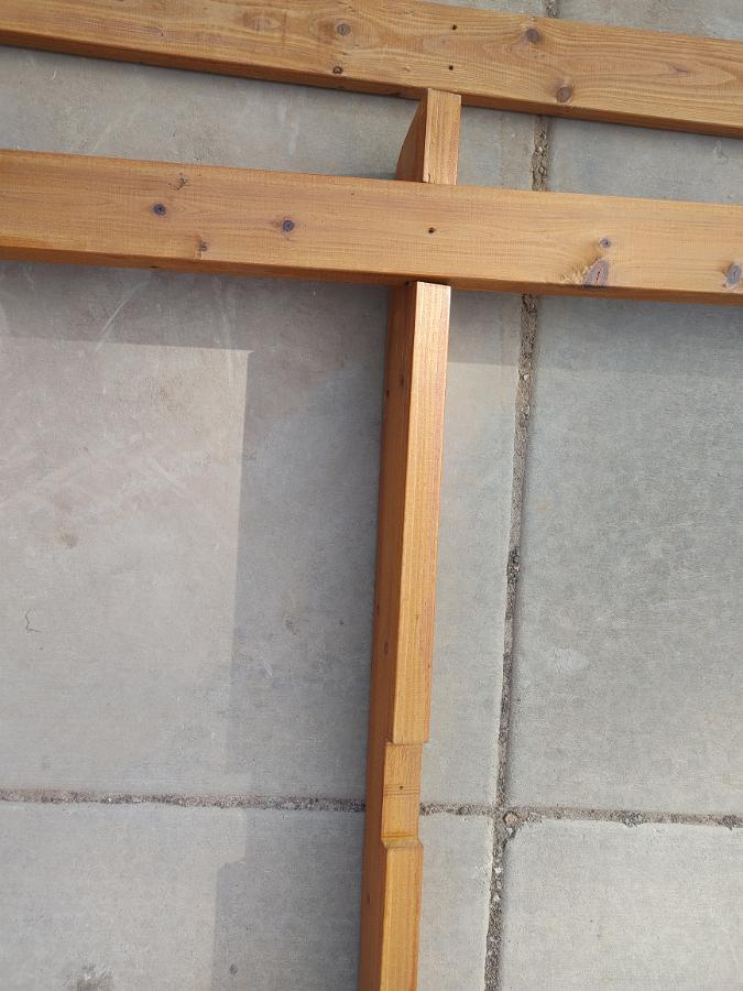 I started assembling the other roof panel and wasn't going to really document much of it since it's almost the same as the other one, but the wood for this side is even worse than the other side. This is one of the worst rafters. It's got at LEAST a 10 degree twist to it. I'm going to use one of the roof sheeting supports to try and help untwist it as I screw all this together.