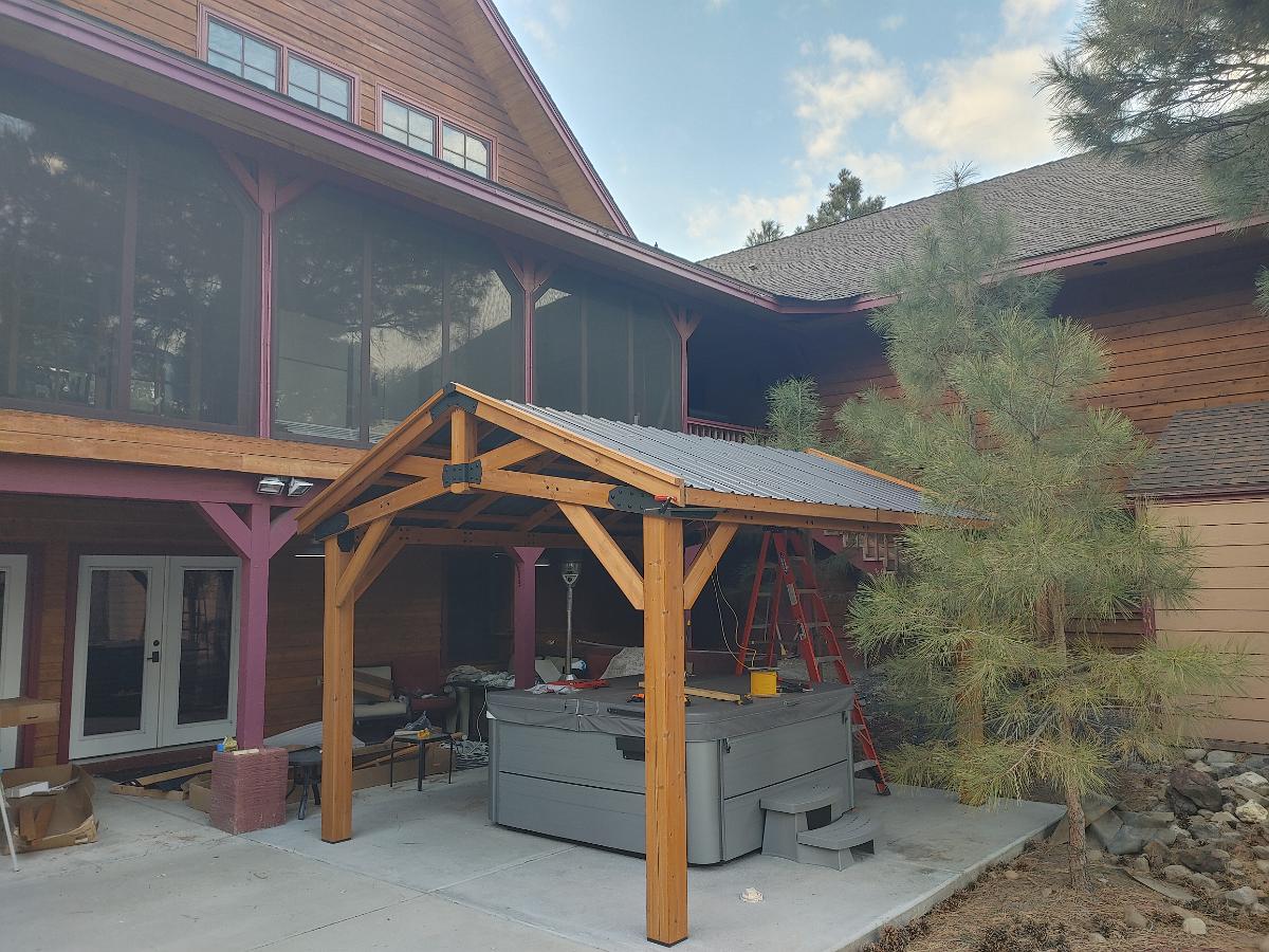 Recruited a 'volunteer' from work and my son and we got the roof panels up in about 45 minutes. The first three went well, but the one above the ladder didn't want to cooperate for a bit. Ridge bolts are all in, but now I need to add the center truss and get the perimeter secured as we're expecting wind and snow tomorrow.