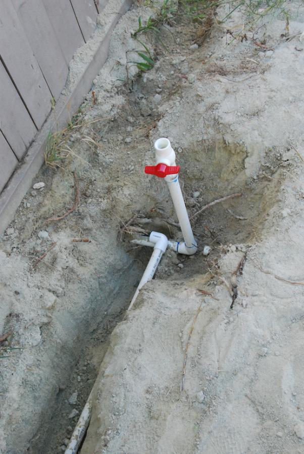 Main water supply to the sprinklers and the pool house getting ready to be reconnected.