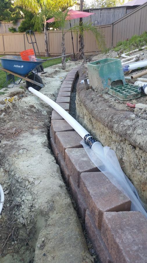 I had to connect the pip outside the trench because there just wasn't enough room to work back there.