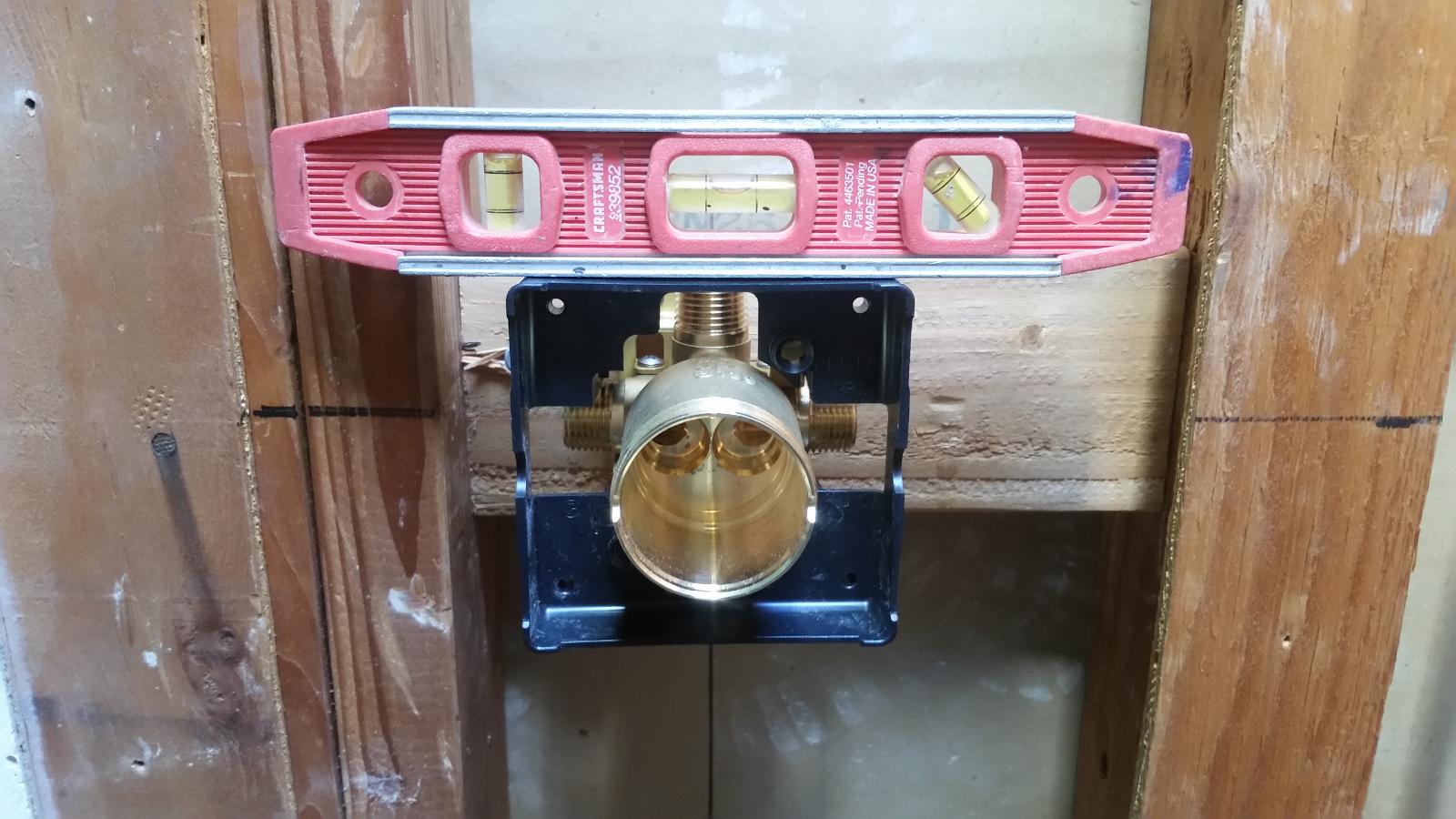 I got the mixer body for the shower in its new location and got it leveled/squared up.