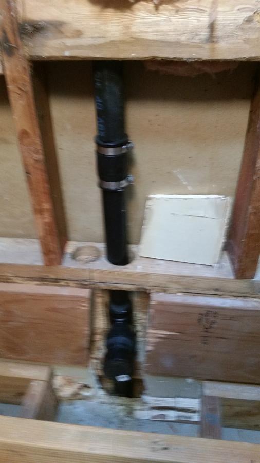 Crappy pictures, but with some fittings, some glue and a Fernco coupler, I got it all roughed in.