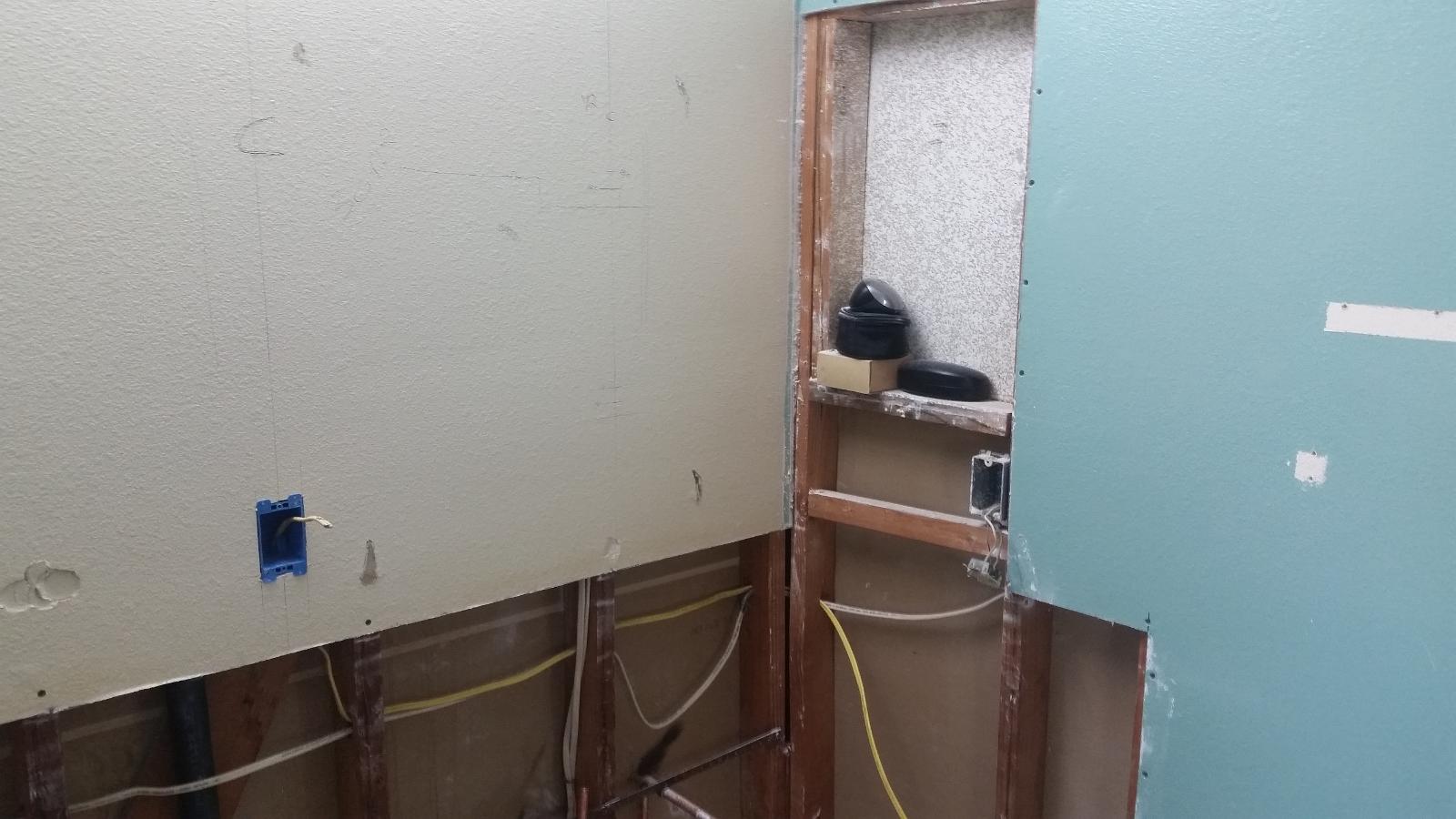 I always like to pull new 20A circuits to bathrooms. with 1500W hairdryers and who knows what else plugged in, a 15A circuit shared with other locations just doesn't cut it. I hired an electrician to pull a new feed from the breaker panel and then had to lay out new outlet locations.
