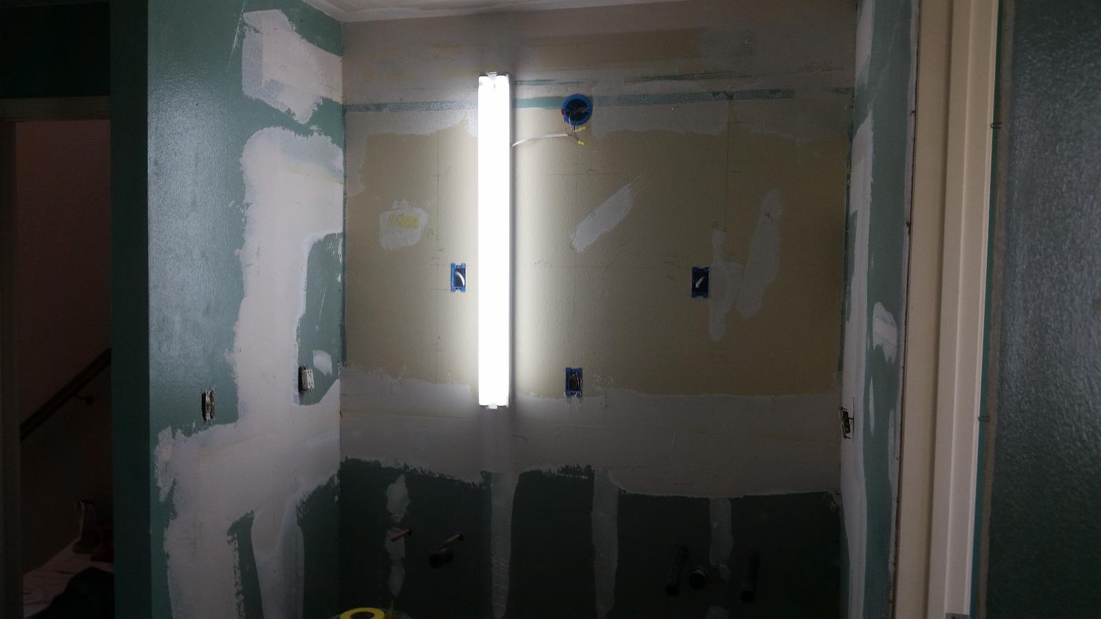 New greenboard up, taped and mudded.