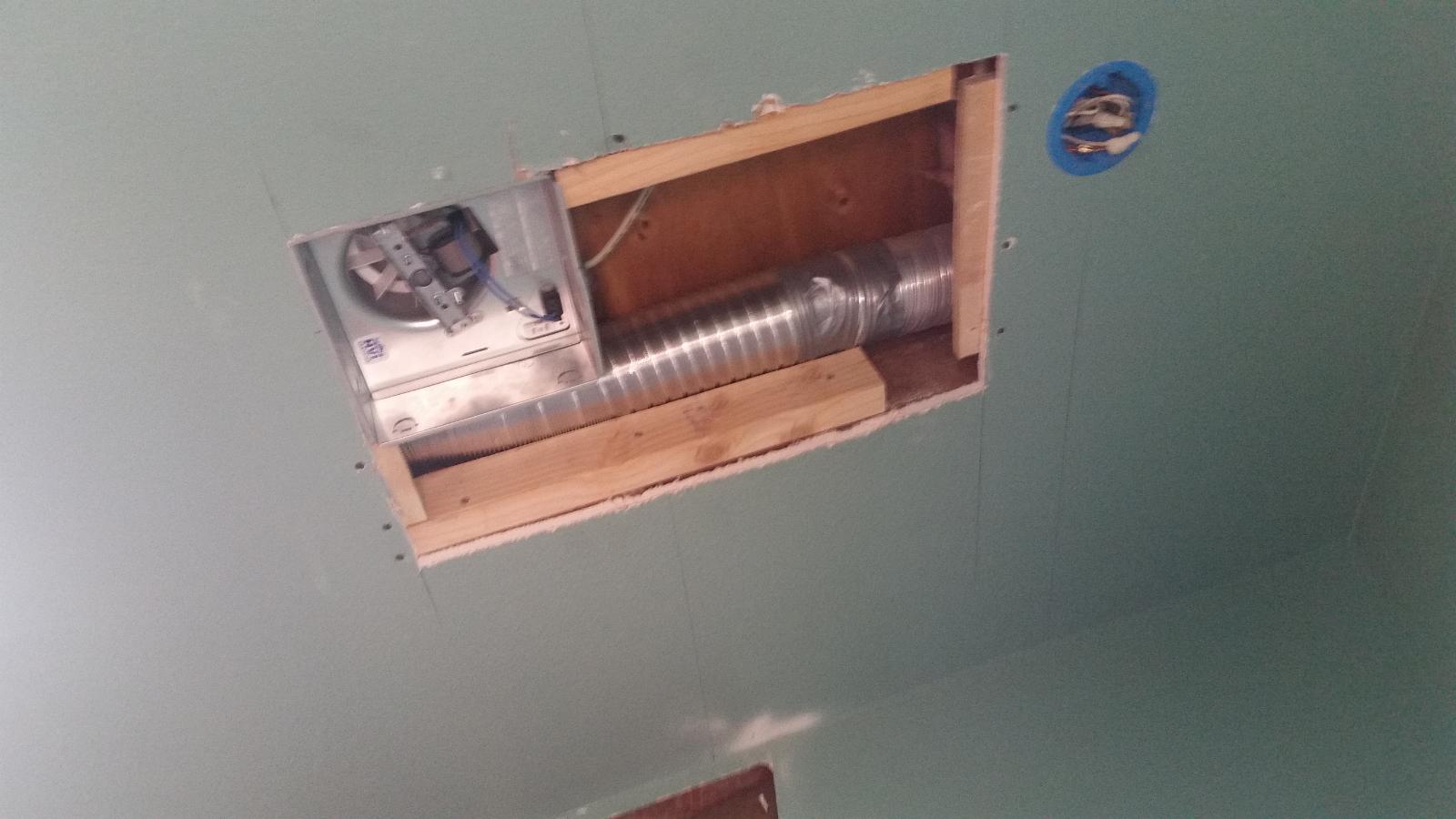 I got the new fan connected up and added some blocking for nailing the new drywall to.