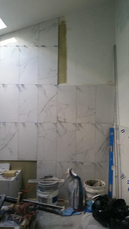 I wasn't so sure about taking the tile all the way to the ceiling, but I'm kind of liking it now.