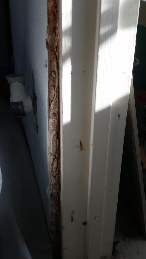 This is the door to the stool closet. It's not plumb so the door always swings open. In addition, the wall is quite a bit out of plumb so I'll need to try and correct this.