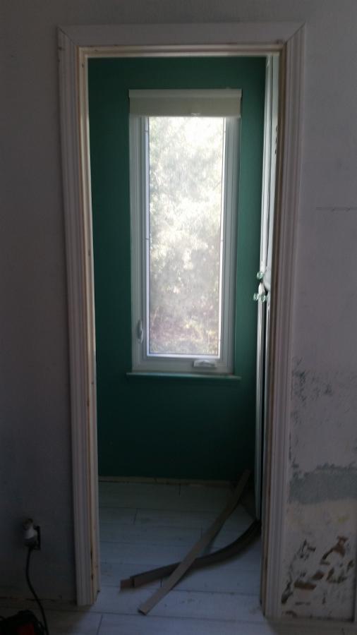 Door casing installed. Just a little filler and some sanding and it's ready for paint.